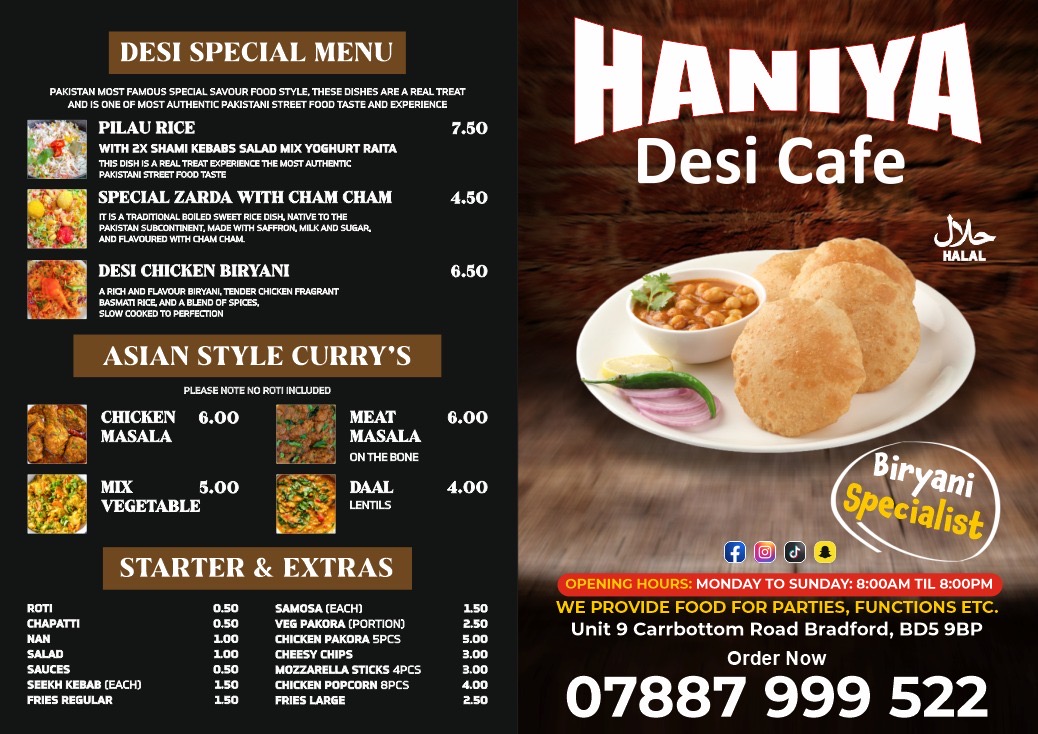 Haniya desi cafe Menu